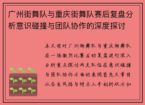 本文将对广州滑板队的状态进行深度对比分析,并探讨其未来发展趋势。首先,文章将从团队实力、训练体系、赛事表现以及社会影响四个方面展开详细阐述。在团队实力方面,将比较不同滑板队员的技术水平与风格;在训练体系方面,将分析当前的训练方法及其有效性;赛事表现则关注广州滑板队在国内外比赛中的成绩与反响;最后,社...